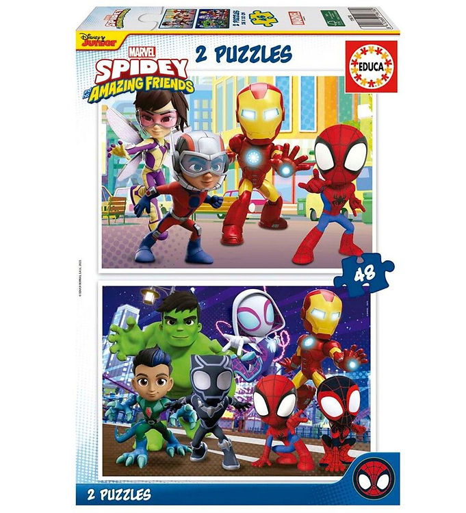 Det absolut nemmeste niveau. Ideelt som barnets allerførste puslespil. Med kun 3 til 5 brikker pr. motiv kan tumlinger være med og genkende deres helte fra Spidey. 🕸️